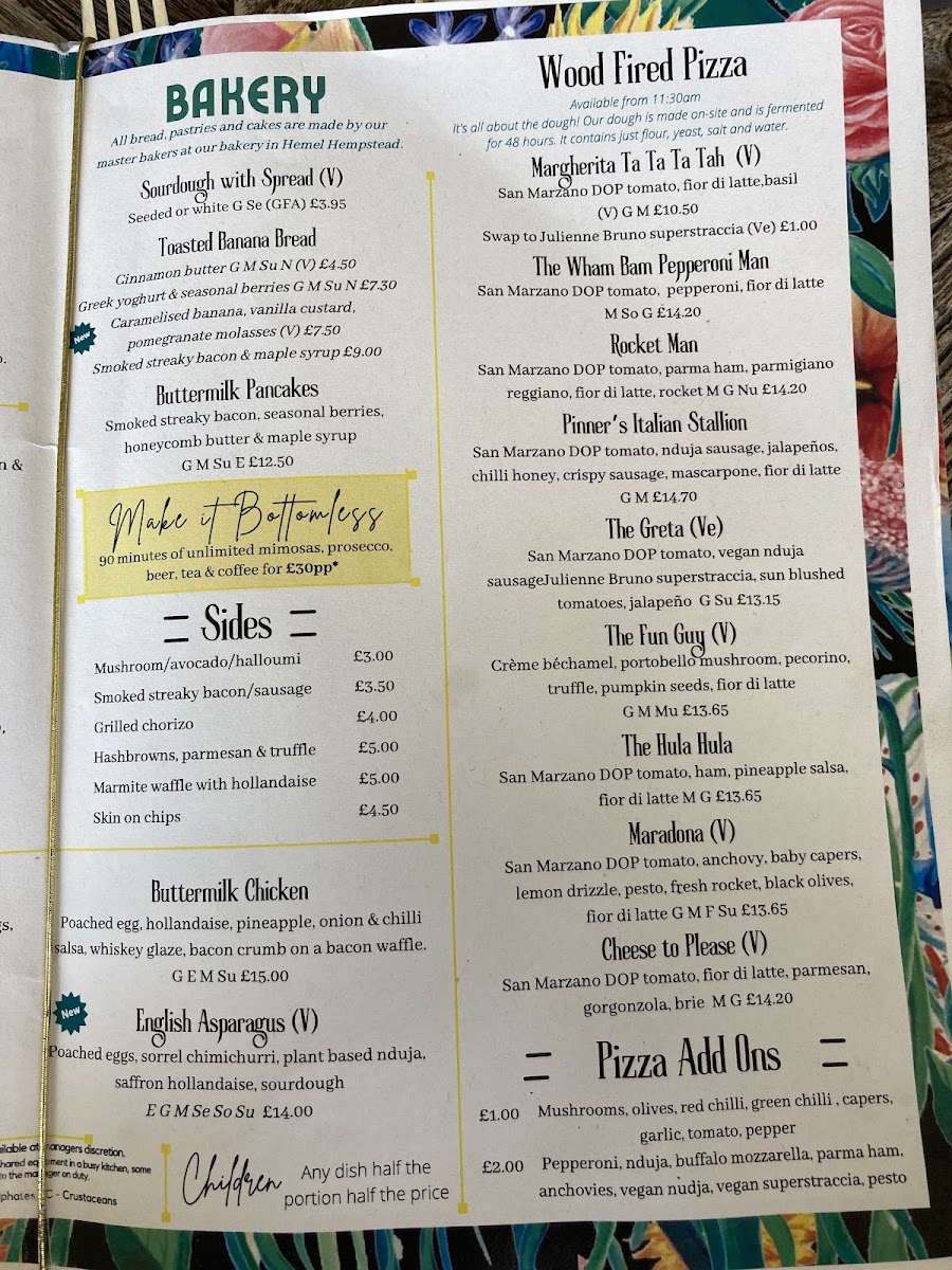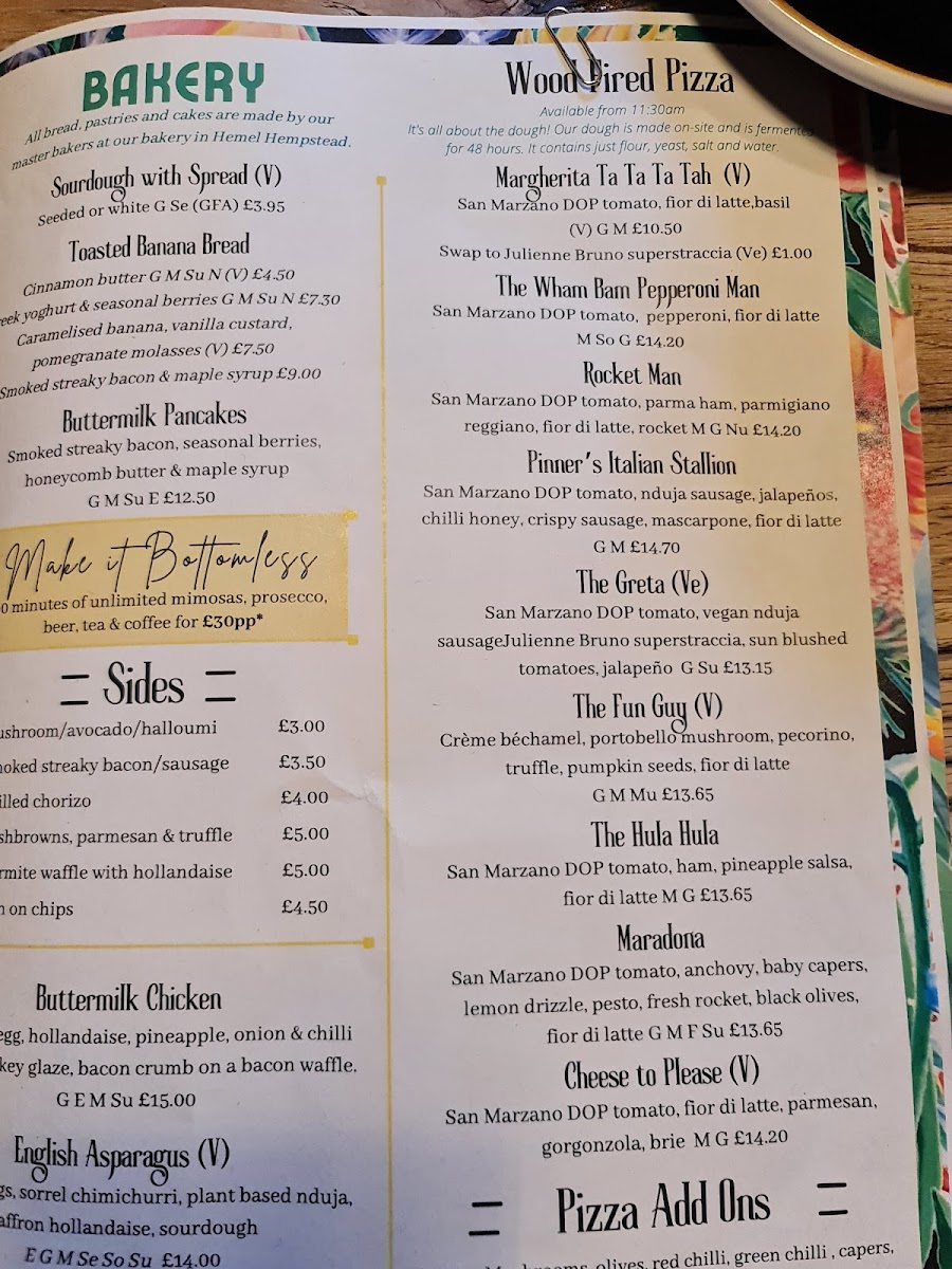 - Indulge in artisanal pizzas like the Rocket Man (£14.20) or Pinner's Italian Stallion (£14.70), perfect for sharing.